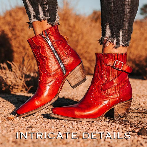 Our commitment to craftsmanship is woven into every stitch. We start with the finest leathers and exotic materials, building each boot to last with Goodyear welt construction. From intricate details to artisan metalwork, we obsess over the details, so you don't have to.
