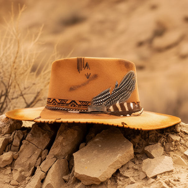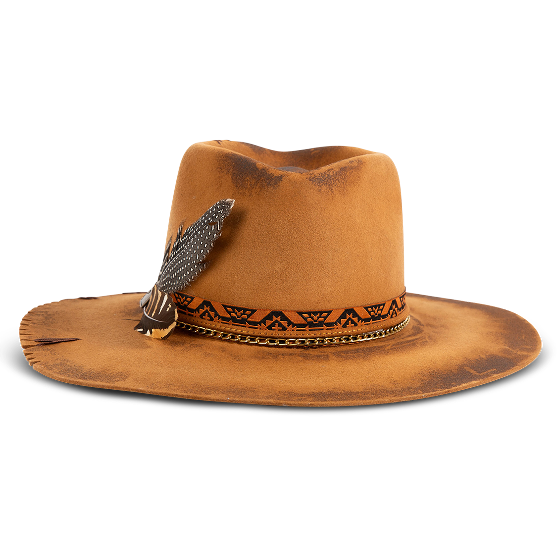 Rooted in western tradition but made for the modern trailblazer, TAYLOR is the definition of effortless confidence. Crafted with tan wool felt and hand burned for a weathered, lived in look.